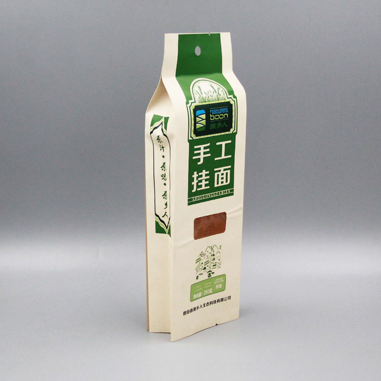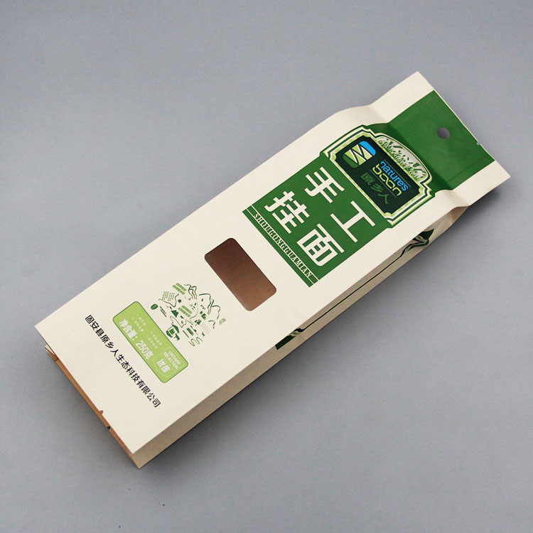 產品名稱:250g手工掛面+黃牛皮紙開窗+側封帶折邊包裝袋