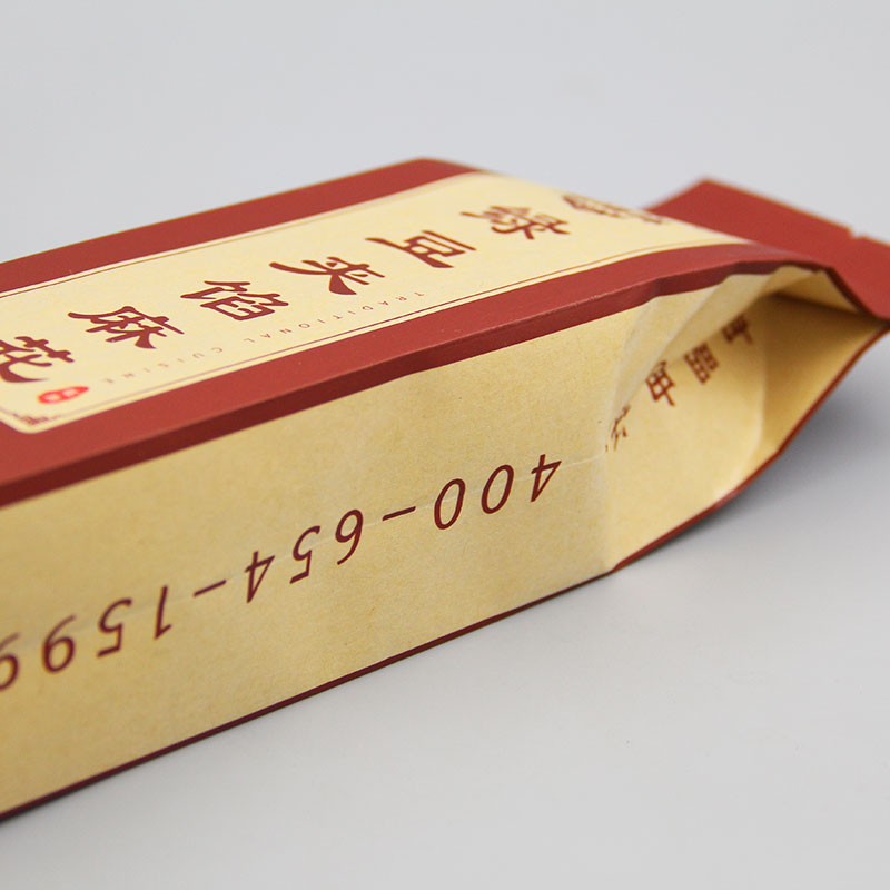 本產品為黃牛皮紙背封帶折邊包裝袋,平滑整潔,熱壓彈性好,封邊平整。黃牛皮紙適合印刷較少面積的色彩,它本身的紋理與色彩能夠很好的與印刷色結合。背封帶折邊可以包裝正面的圖案完整,比較美觀,能保持圖案圖畫的一致性,因為封口在背面,所以這個袋子的兩邊可以承受較大的壓力,減少了包裝破損的可能性,在包的大小相同的情況下,采用背封的封口方式,其總長度小,這樣可以降低包破裂的幾率。